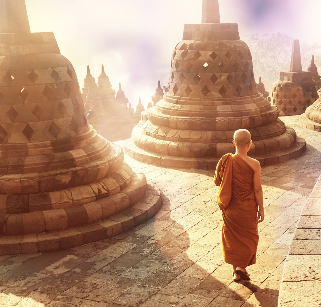Circle Borobudur, the Buddhist temple in Indonesia