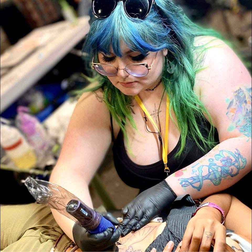 I grew up in Suffolk, England with my mom who was also an artist. I was raised around artists and musicians and had developed a very creative found family. They supported me and my love for drawing and painting so I always felt encouraged to keep creating. It’s a very long and complicated story of how I ended up in NC. Read more>>