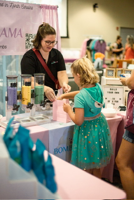 Now, after years of attending in-person markets, I’ve built a following. People recognize me for my “build-your-own” bath bomb station, paint-your-own kits, and distinct branding. It’s incredibly rewarding to know that all the hard work I put into even the smallest details, like branding and labeling, is being remembered. I take pride in being a trusted brand, even if it’s a small one, that people feel good about using for themselves and their kids. What really sets me apart is off
