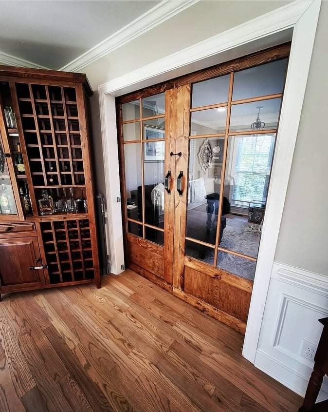 We definitely jumped in headfirst learning as we went. We both were working at other jobs and always hoped to find something that we could do to create for ourselves as our own business wasn’t sure what it was just taking the steps that God was placing before us. Well soon enough, we sold a table and I took a leap of faith and quit my job to do this full time to dedicate everything I have to this business that we really haven’t even created yet. But we trusted God and the plans he had for us. My wife was able to work Facebook marketplace and keep us consistent on orders as we figured this out. The second year in, we started making noodle boards (Stove Covers). For the holidays, we created a post for them and boosted our Facebook post which ended up reaching 4 million people nationwide. This was very exciting but it almost ended our business because we were not ready for that kind of attention. This humbled us a lot to know who we are and what we can and cannot handle as a business of two. The next few years, we started learning more and being able to obtain new equipment through our own means (no loans or grants taken). We started getting into barn doors, tables, desks, shiplap, chair railing….etc. This would be consistent work throughout the year to keep us both home working for our business. Today we have gotten into French glass barn door styles and herringbone style tables that have been a big hit with our customers and we can only imagine what God has planned for us in the future with this business that he truly blessed us with just because of a little faith.