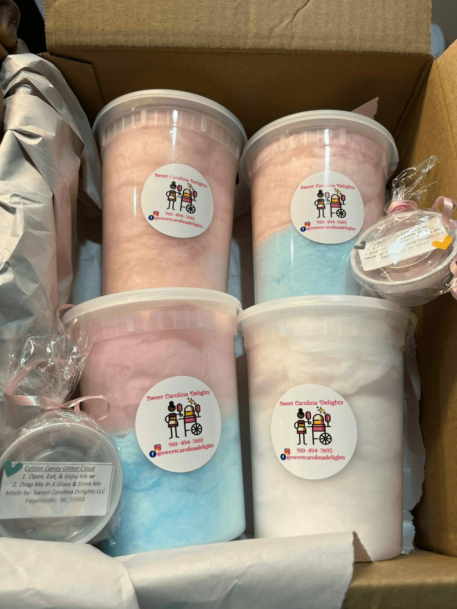 Another highlight has been working with a well-known store in Raleigh, NC called Kandy Apples by K. The owner, Mrs. Kimberly Battle has welcomed our cotton candy cakes, containers, and push-up pops, giving us the chance to reach customers outside of Fayetteville. We appreciate this opportunity and look forward to