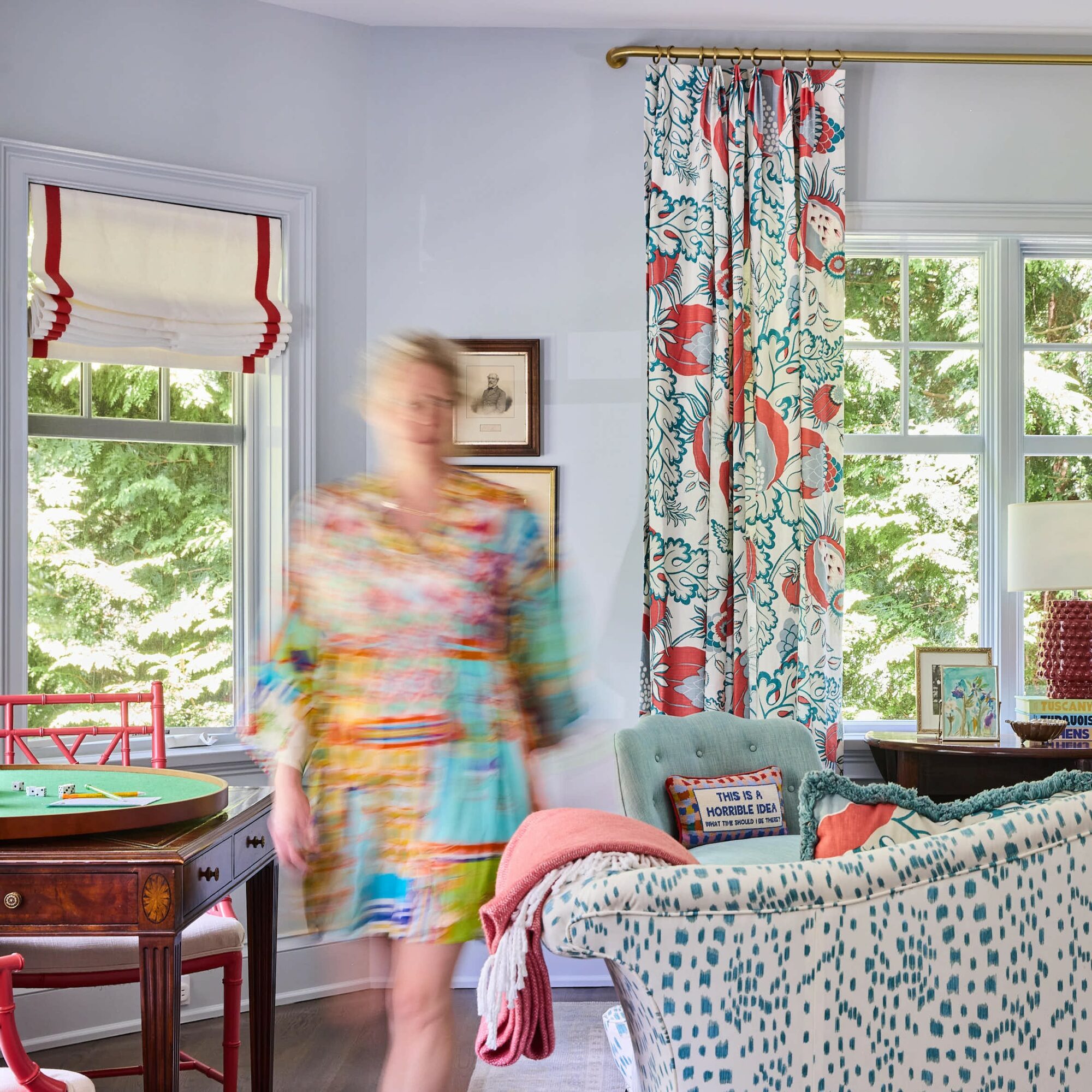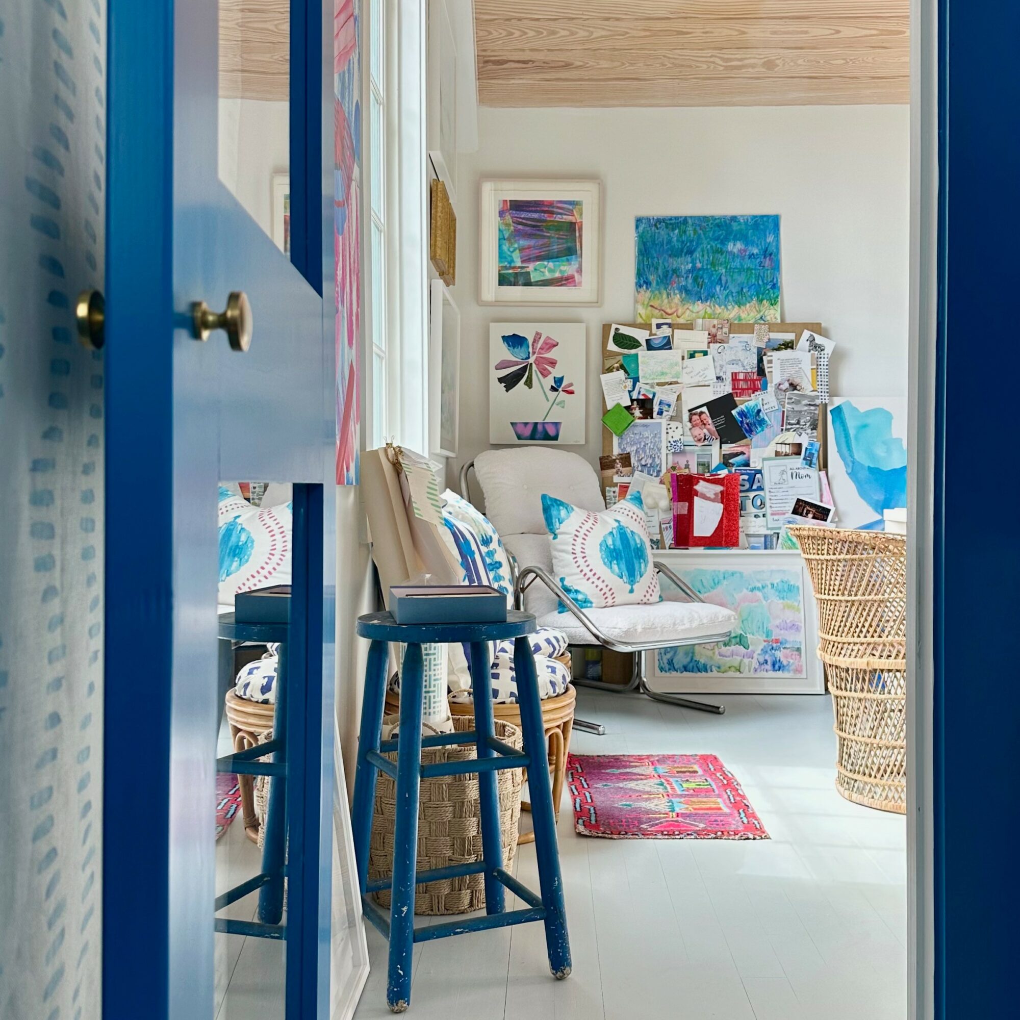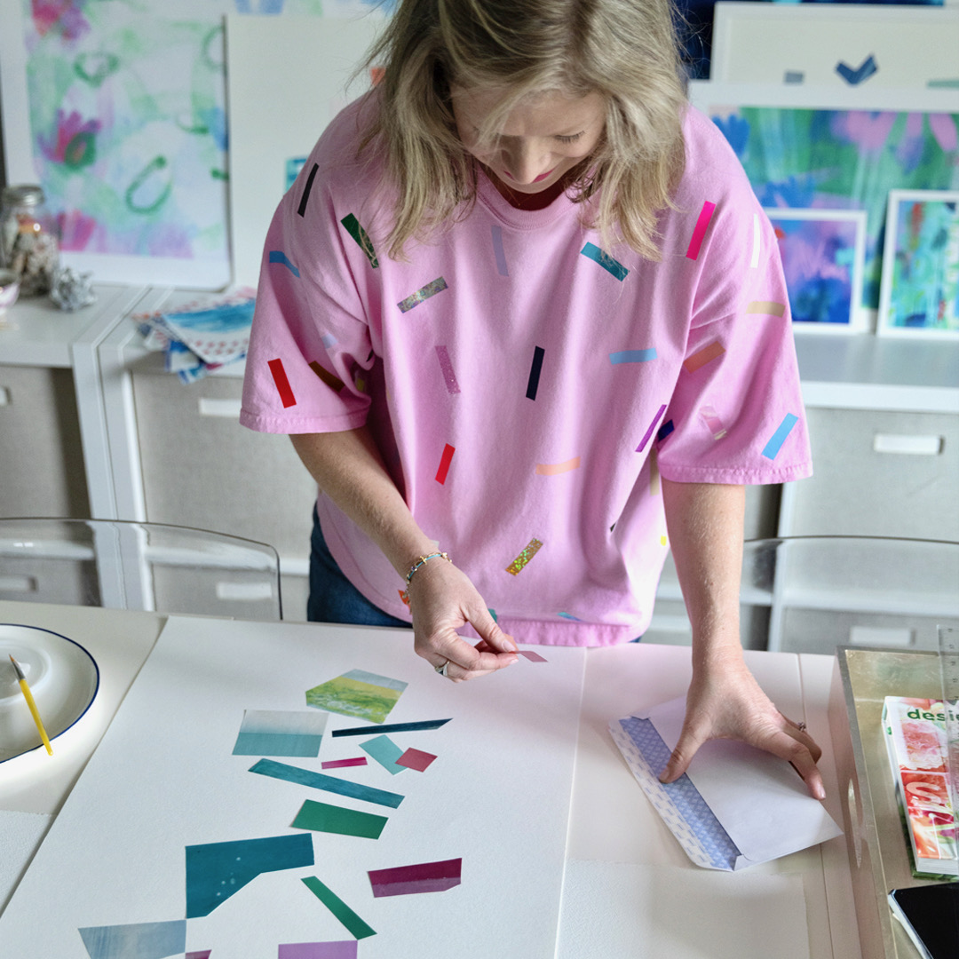 I specialize in creating colorful artwork and interiors aimed to bring joy and a sense of calm to the everyday. In both of these disciplines, I am known for my use of layering color and pattern and how my combinations are simultaneously vibrant yet soothing, which is not something you always get when using a bolder palette of colors. In my artwork, I am most proud of my compositional skills across such a wide variety of mediums. I can cover an entire canvas or balance a collage with just the right expanse of negative space. I truly enjoy working at both ends of the spectrum between super loose and super precise. I think what sets me apart is my ability to create on so many different planes while truly maintaining a feeling of connection, a thread that runs through them all.