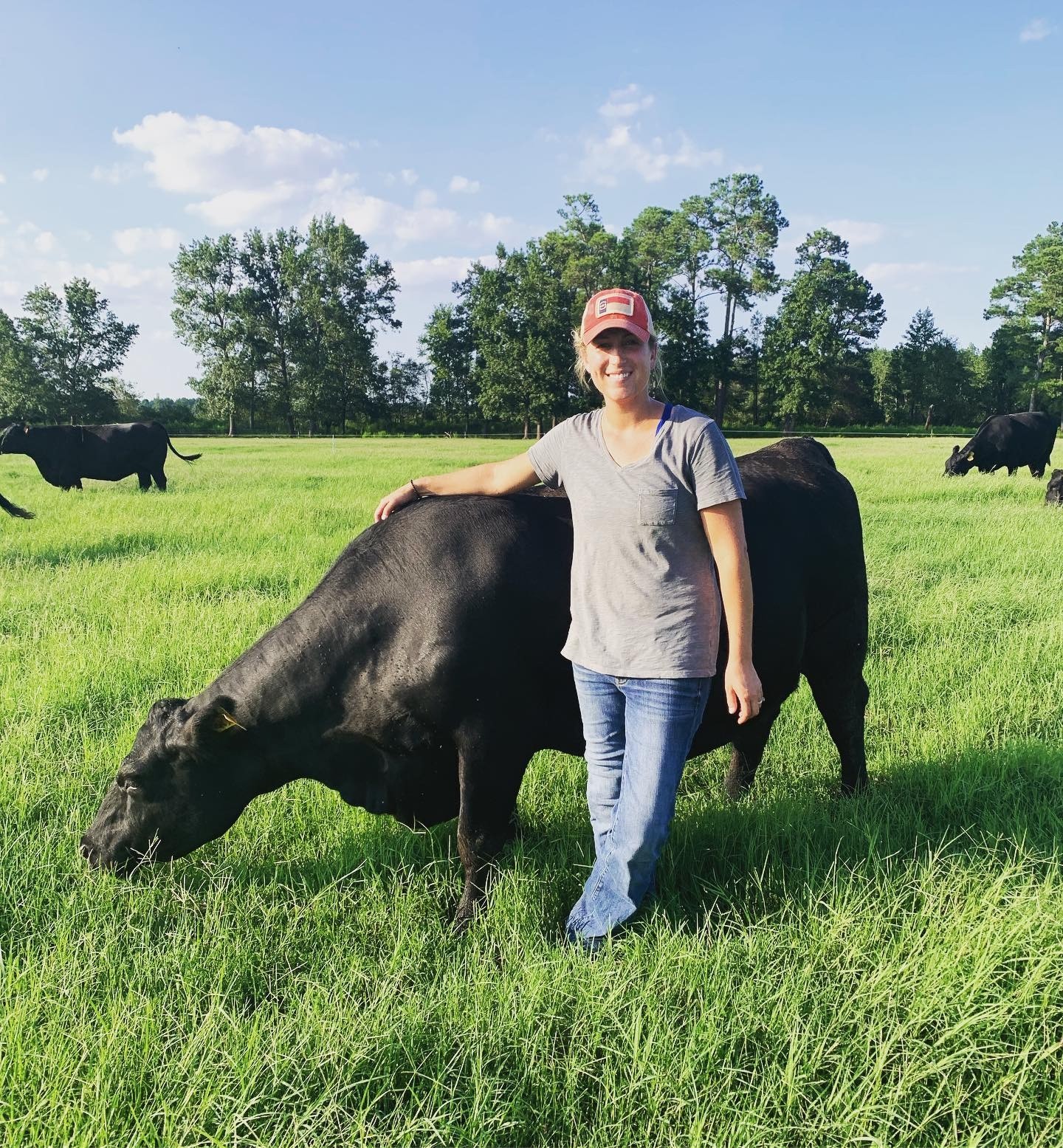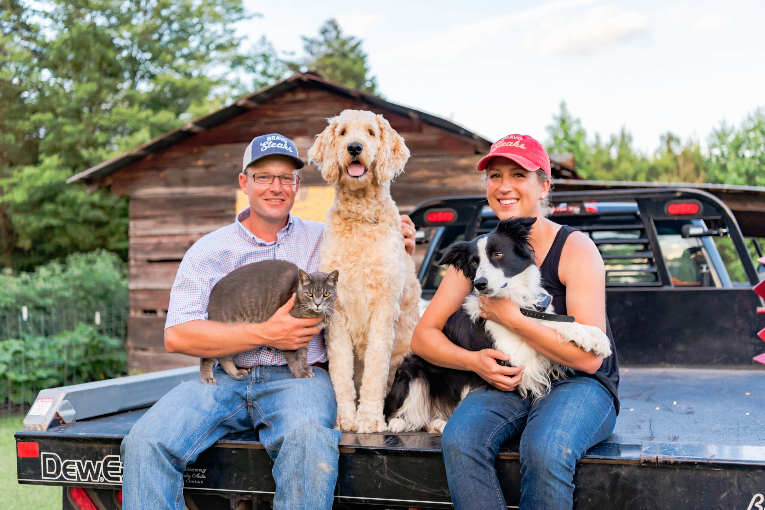 My name is Emily, and I’m a farmer. My husband (John) and I raise Angus cattle and Berkshire pigs, and we own Bravo Steaks. Bravo Steaks is a meat company that sells and ships beef and pork from our farm directly to homes nationwide. We are a first-generation operation – John and I started our farm from scratch. It’s really hard to start any business from scratch, especially a capital-intensive, experience-intensive business like a farm. Fortunately, from the start, both John and I came in with more experience than money can buy. Both of us were raised around livestock (I showed cattle and raised wool-breed sheep; John showed market livestock through his hometown 4-H). In college, we both pursued and furthered our livestock experience in many ways.