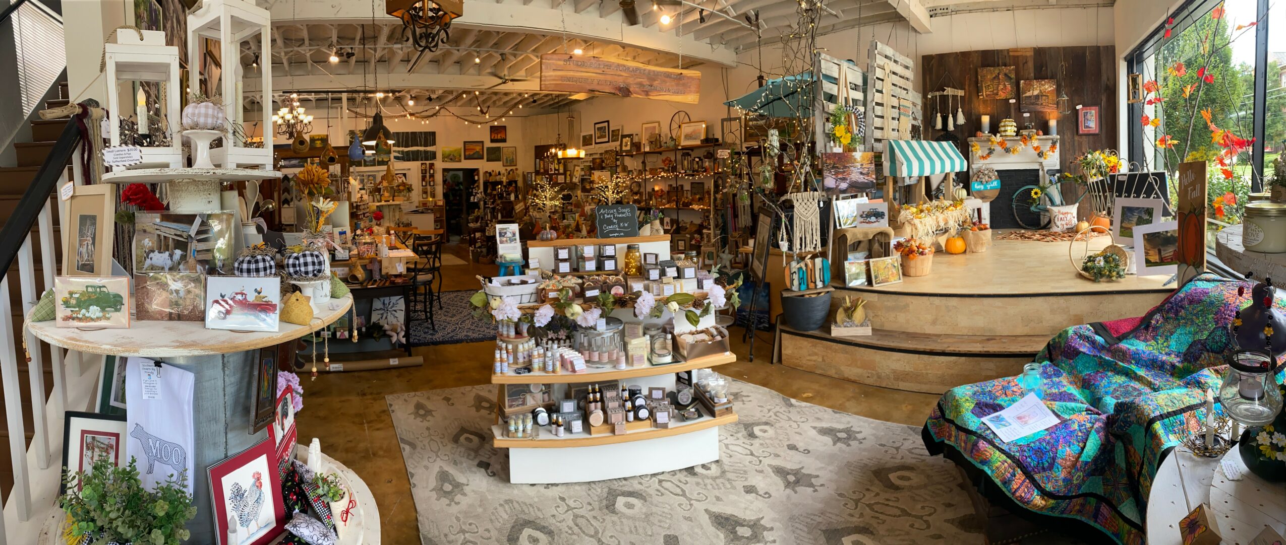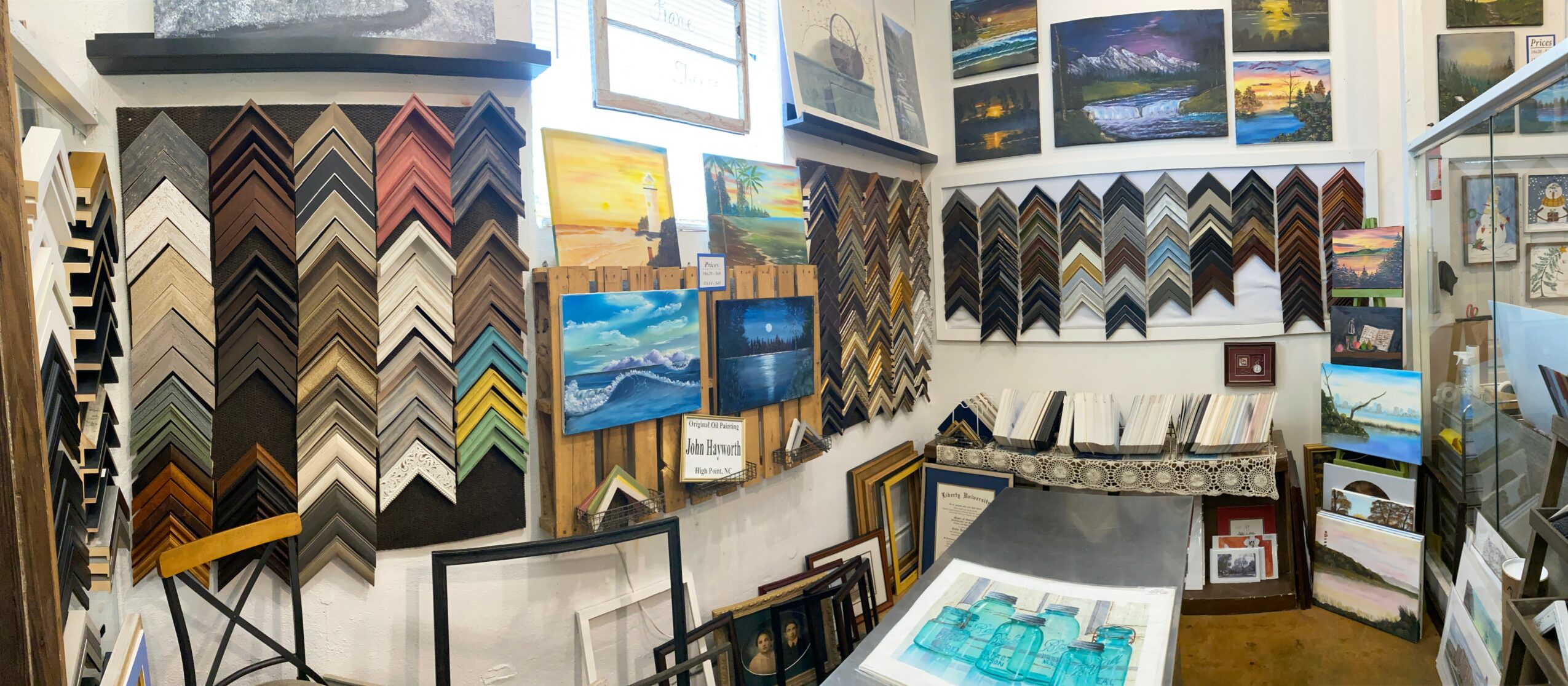 We started as just a Photography Studio & Custom Frame shop. Over the past 4 years, we curated local art and we now have 25 local artisans and vendors that make a variety of goods and gifts. We sell home decor, candles, and soaps, pottery, wood products, photography, acrylic & oil paintings, as well as other seasonal gifts. Everything that we sell is handcrafted by our local artists. We are centrally located in North Carolina so we attract customers from all over the Triad.