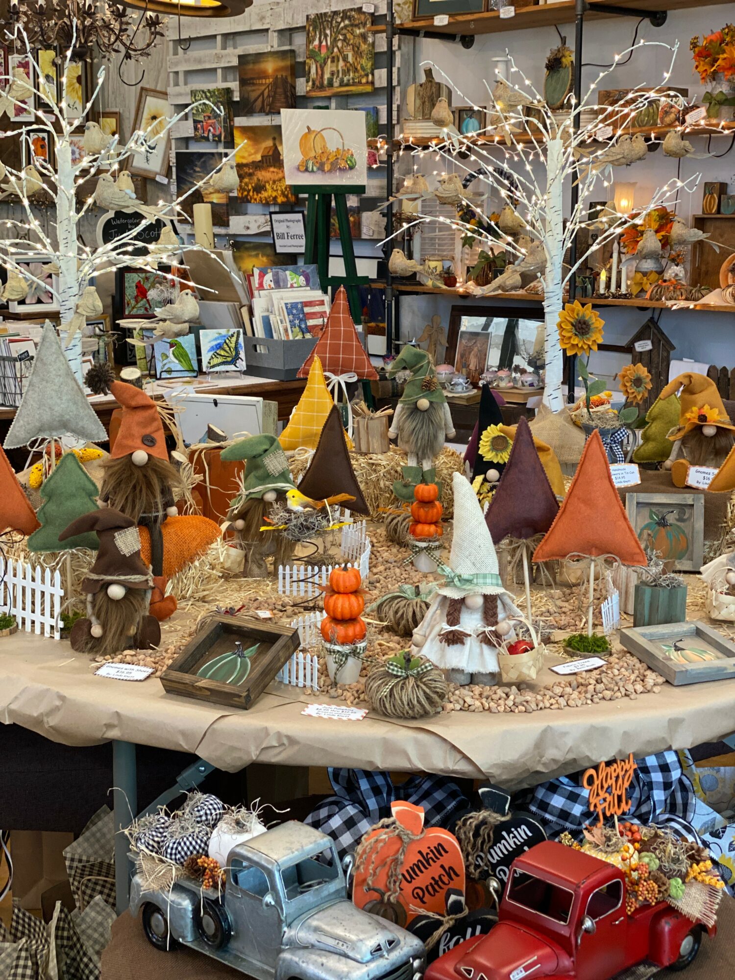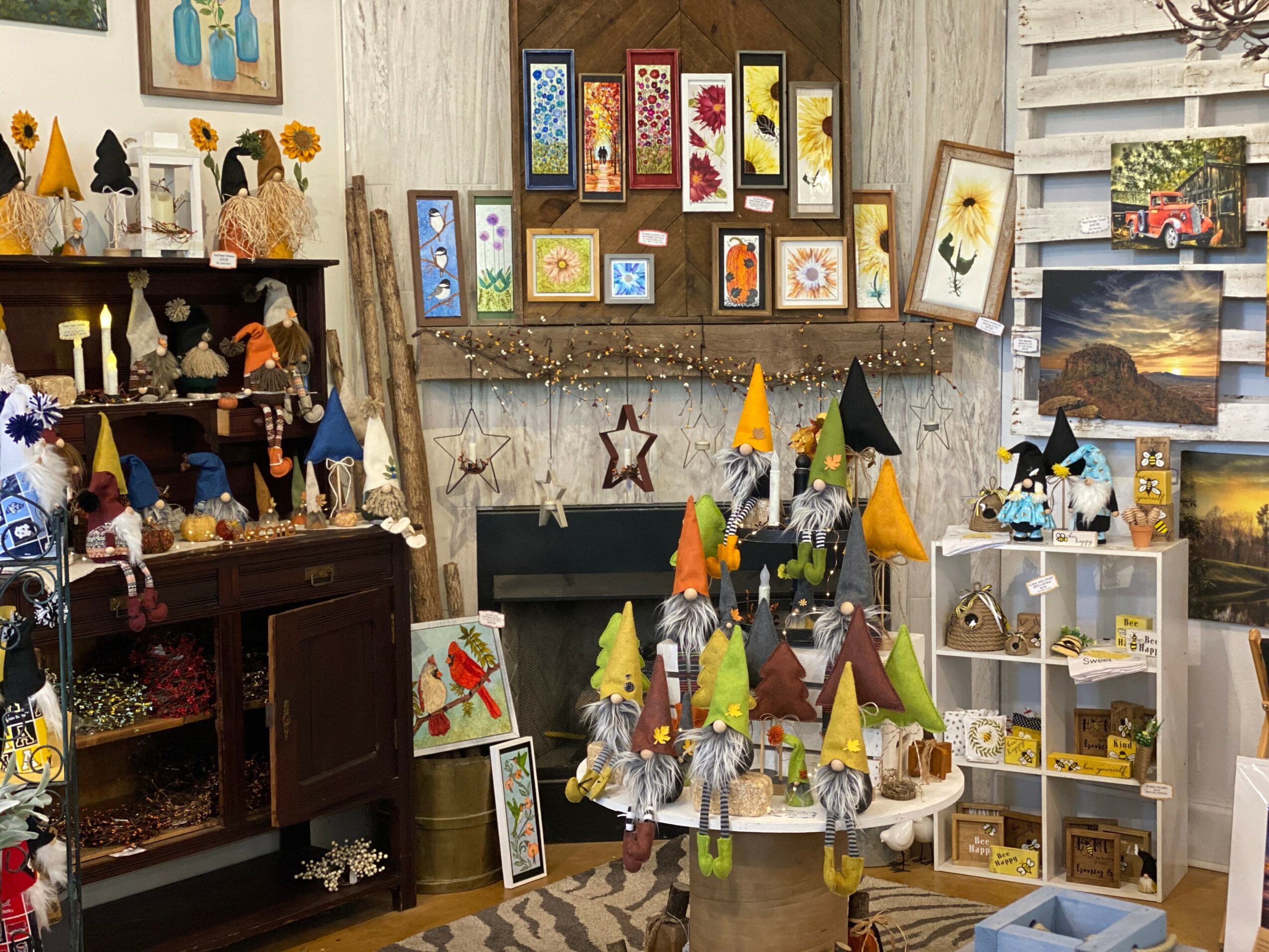 We constantly change our inventory to coincide with the seasons and newest trends. One of the things we are infamous for is our Gnomes. They are made by the dozens by the only one artist, who is Beth’s sister, Linda. She spends countless hours making these and they fly off the shelves. You will have to come into the shop to see all the rest of the stuff that we are famous for!