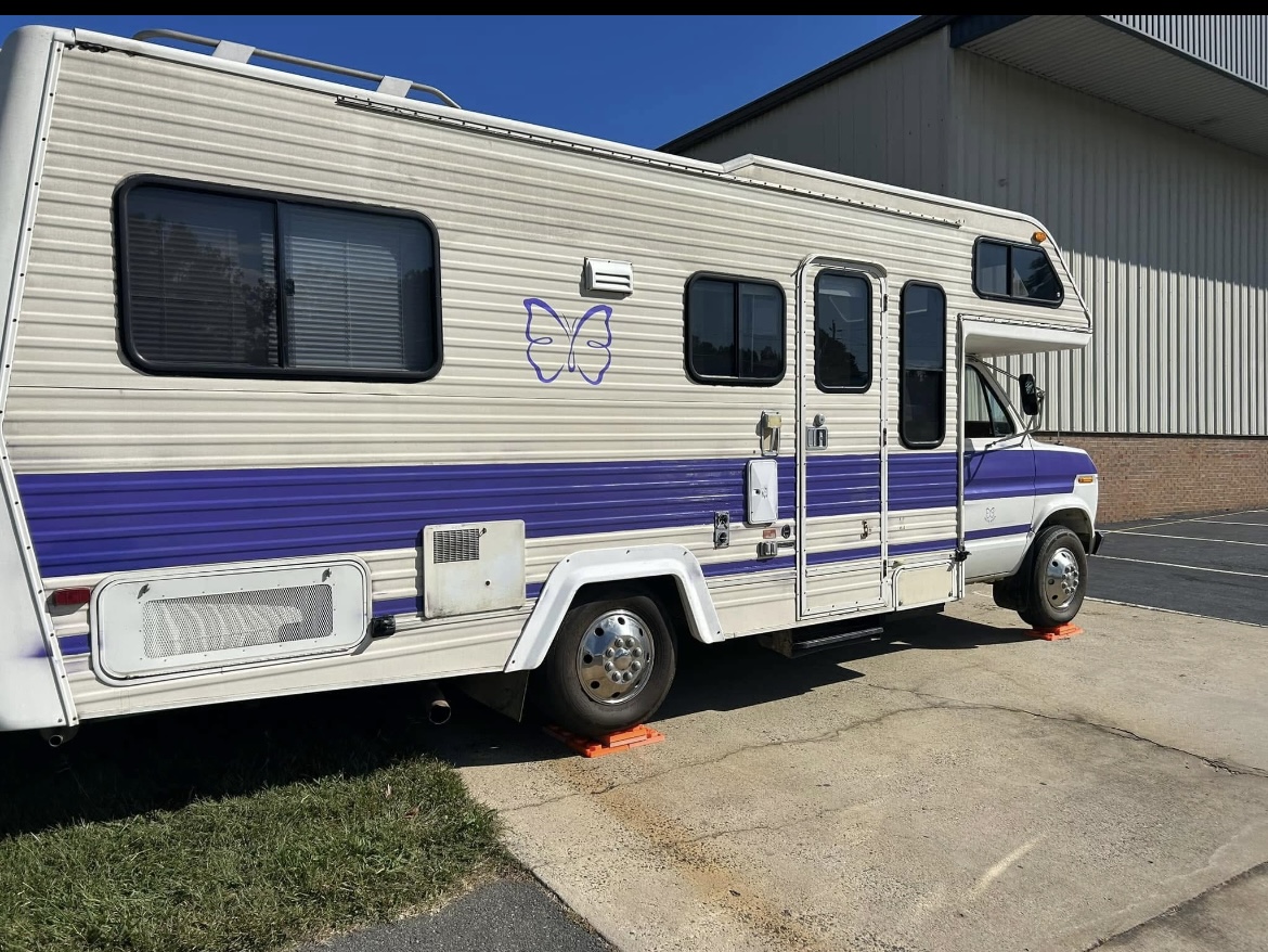 An RV converted into a mobile shower unit