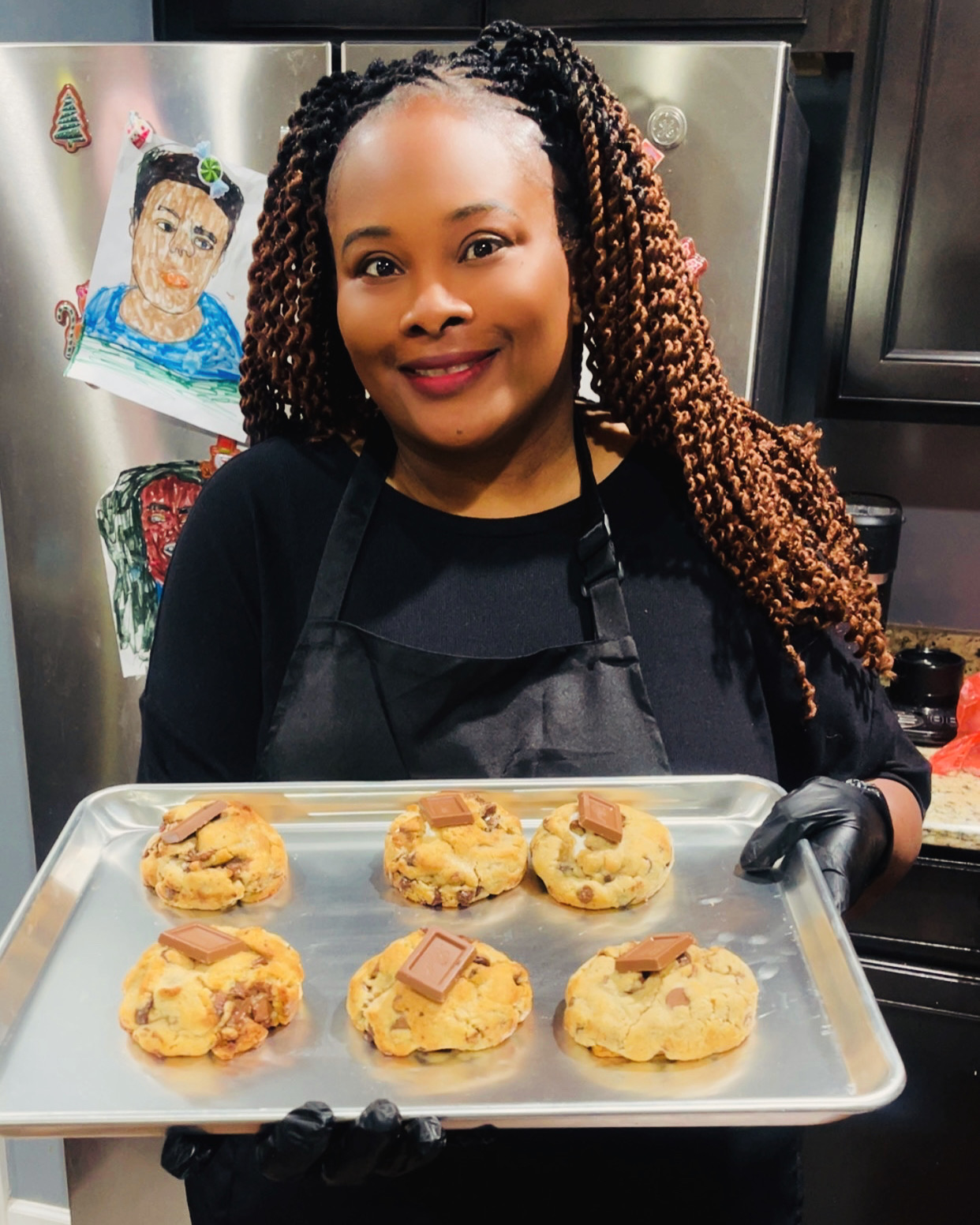 Years later, in 2024, I was working as a nurse at the health department, a role I truly loved. Due to unforeseen circumstances, I had to step away, and during that time of rest I realized how overworked and stretched thin I had been. Baking became a creative outlet again, and one day I decided to try making cookies for the first time. Initially, it was a complete failure. Determined to succeed, especially for my son who loved chocolate chip cookies, I kept going until I finally got it right.
