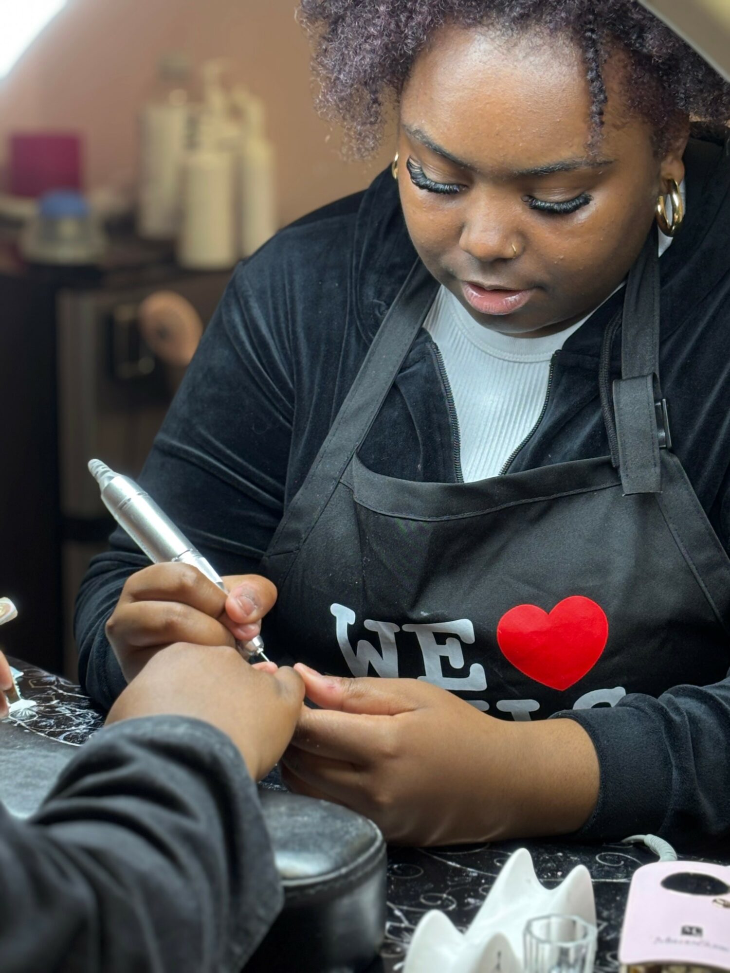 What makes me happy is purpose and progress. Knowing that I’m building something meaningful with my hands and my heart brings me fulfillment. Creating a safe, welcoming space where clients feel confident, cared for, and educated about their nail health is deeply rewarding.