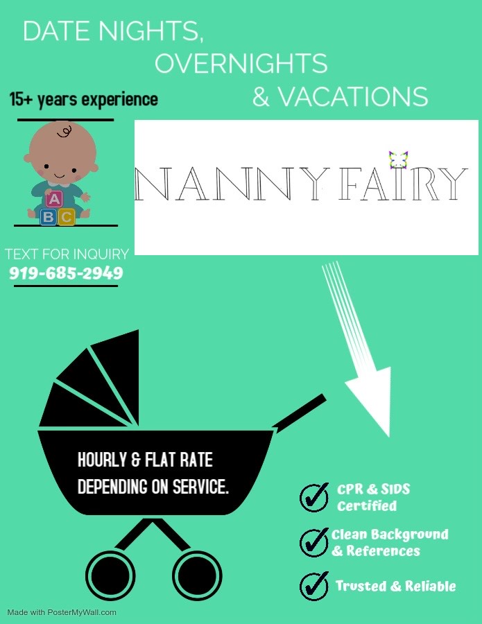 My name is Dyamund C ; known as Fairy. I have a business by the name of NannyFairy and I specialize in Date Nights, Overnights and Vacations. I do provide day to day services if needed. This business is special because not only will I take care of your child(ren) but I will also ensure that they learn throughout the duration of our time spent together. My motto is “Children are as natured, as the are nurtured.” NannyFairy brewed for some years before launching and I’m glad it happened that way. I am working on expanding my clientele (Nanny Families) and allowing things to align just the way they are suppose to.
