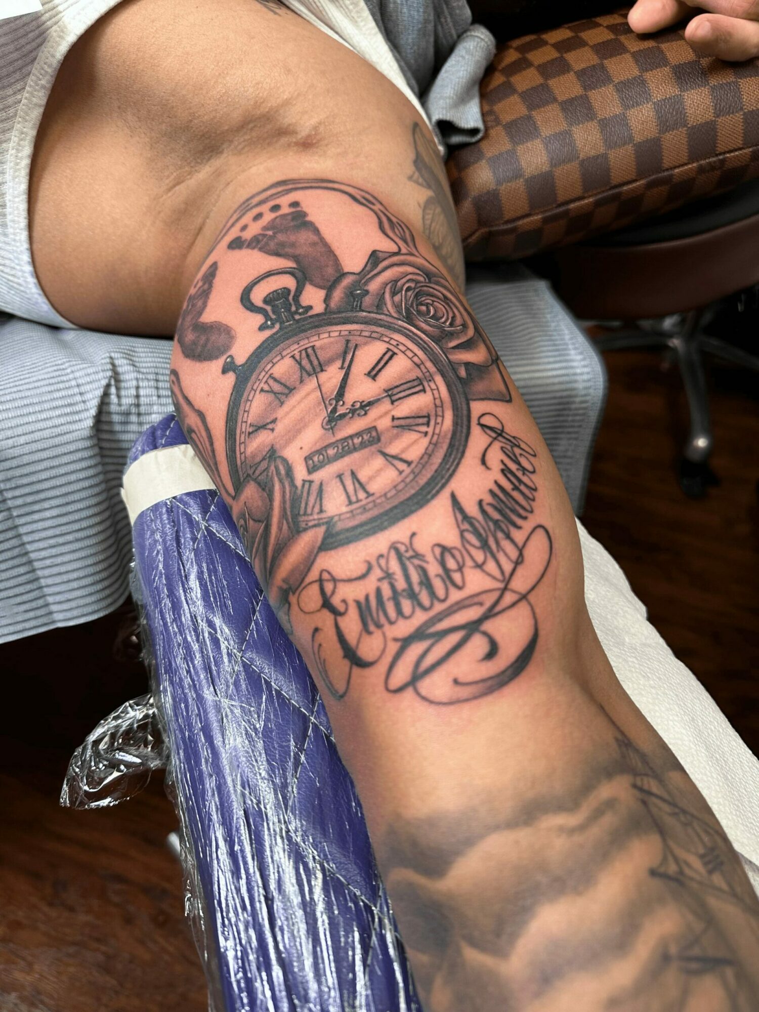 I like to create things with the direction given from the client with no restrictions. The reason I say no restrictions is because tattooing is so complex, and there are certain unwritten rules that must be followed, so I take everything and just do what I do best to create from paper, to IPad, to skin. I enjoy realism, surrealism, black and gray, and hand style script.What sets me apart from others is the attention I give to the client during their session. It’s very personal.