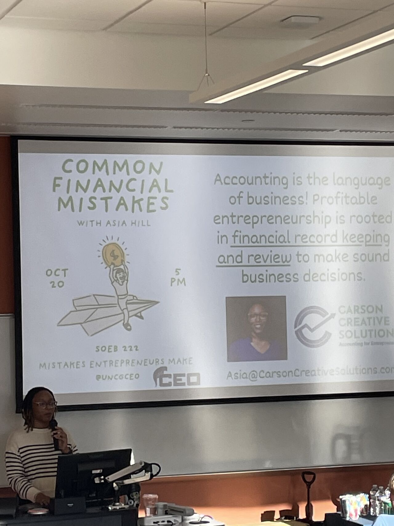 People can collaborate with me in many ways! I’ve helped facilitate LaunchCamp with LaunchGreensboro, I’ve been a mentor with the Winston-Salem Women’s Business Center for almost a year, and I’ve been invited to speak to groups like UNC Greensboro’s Collegiate Entrepreneurs Organization (C.E.O.). I’m also happy to collaborate on educational/professional development materials for entrepreneurs, providing practical tips for financial record keeping and analysis.