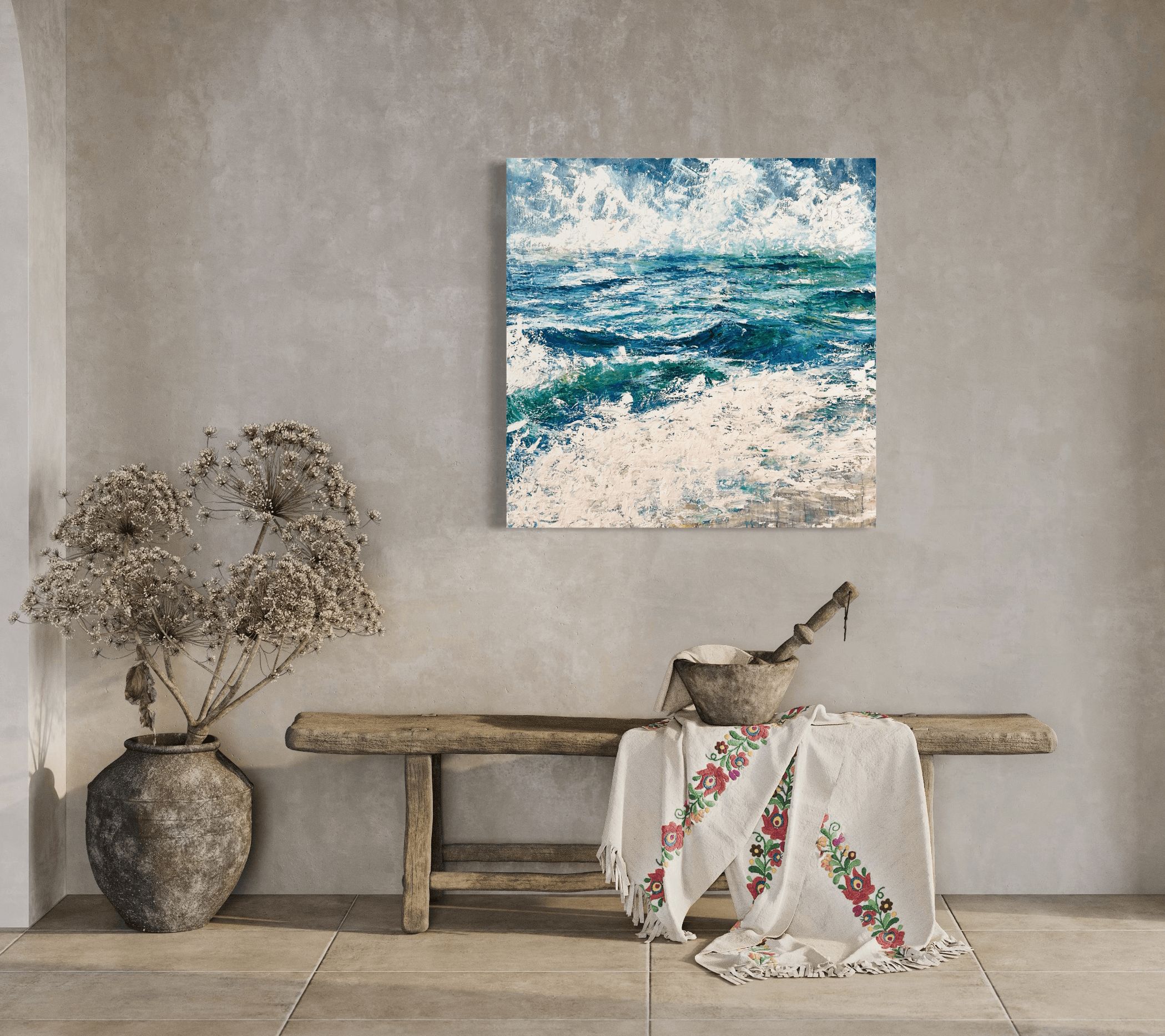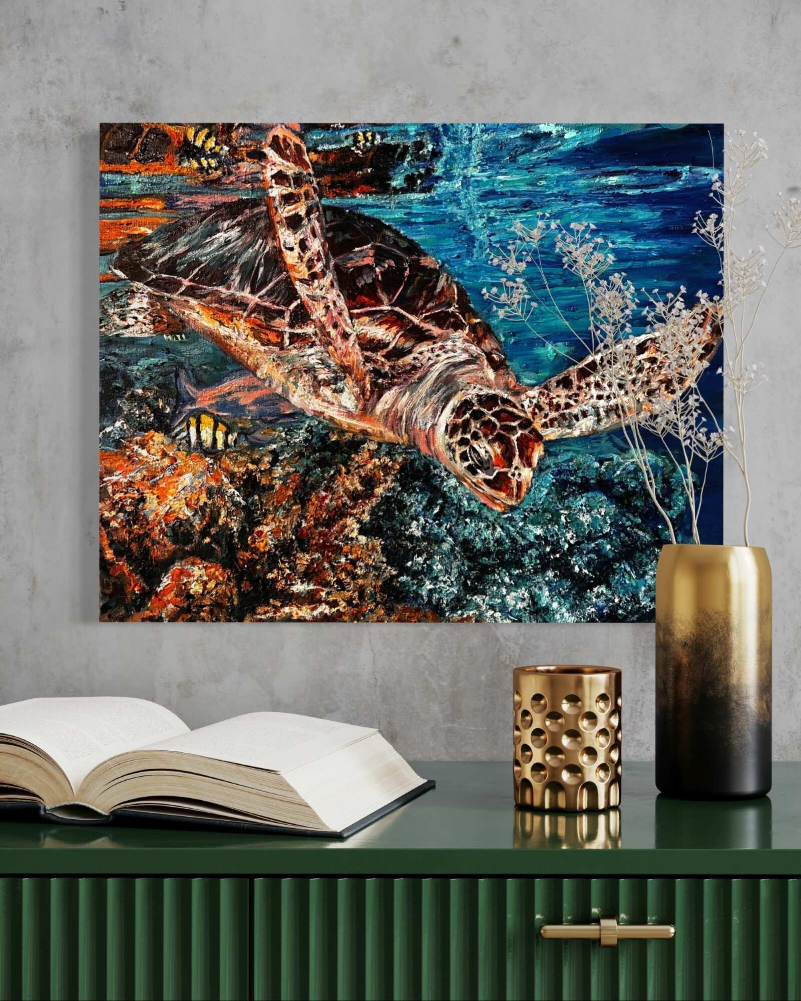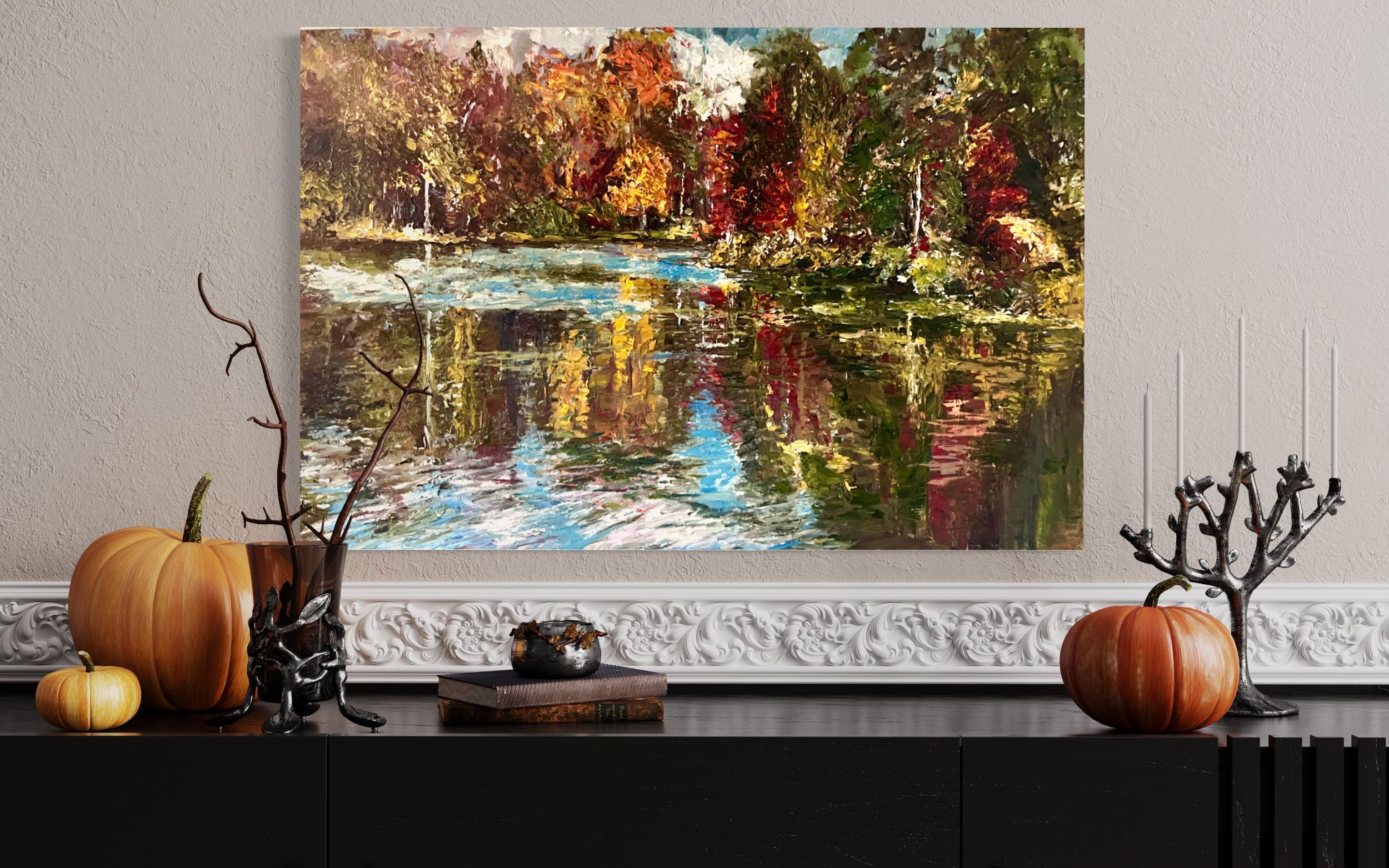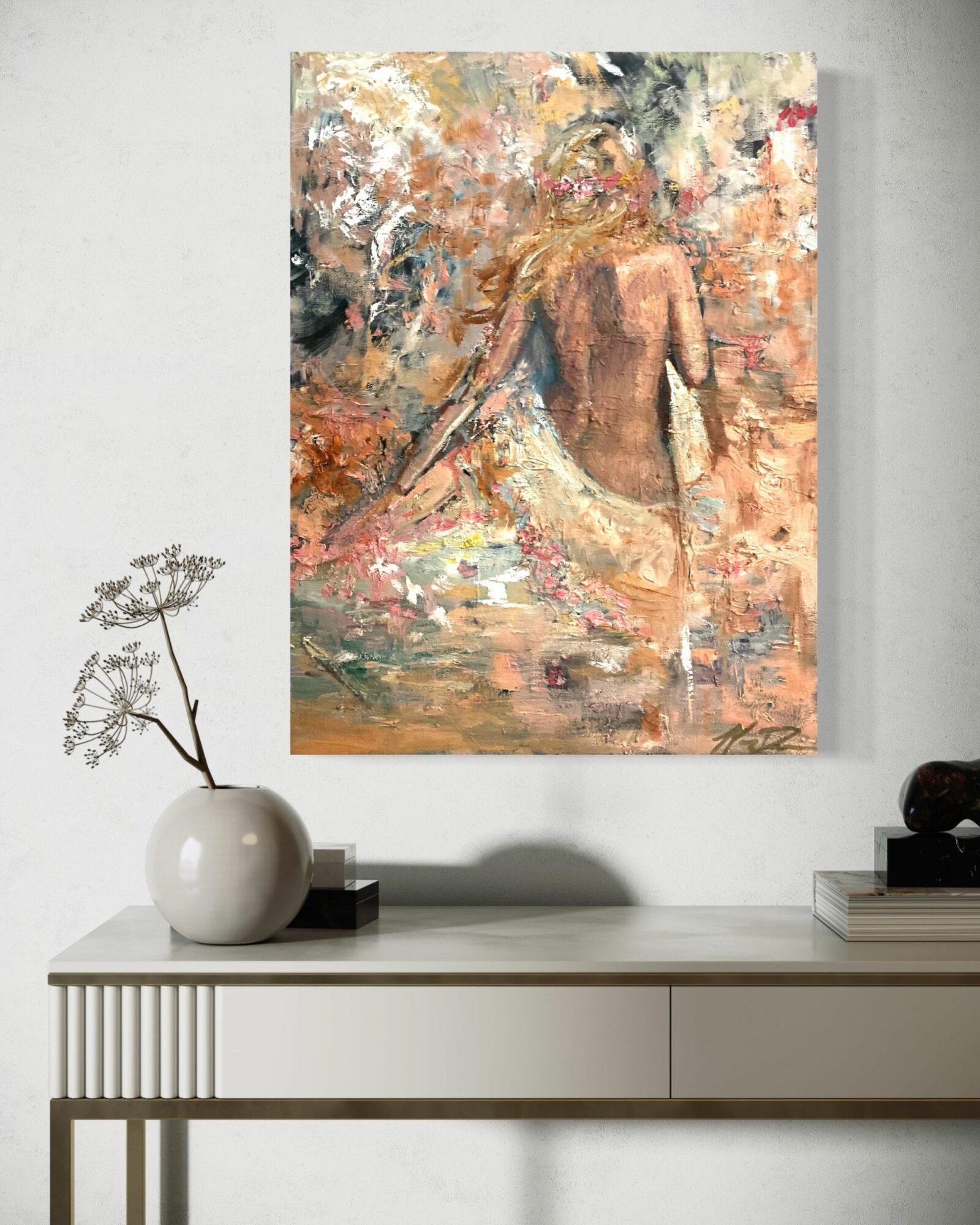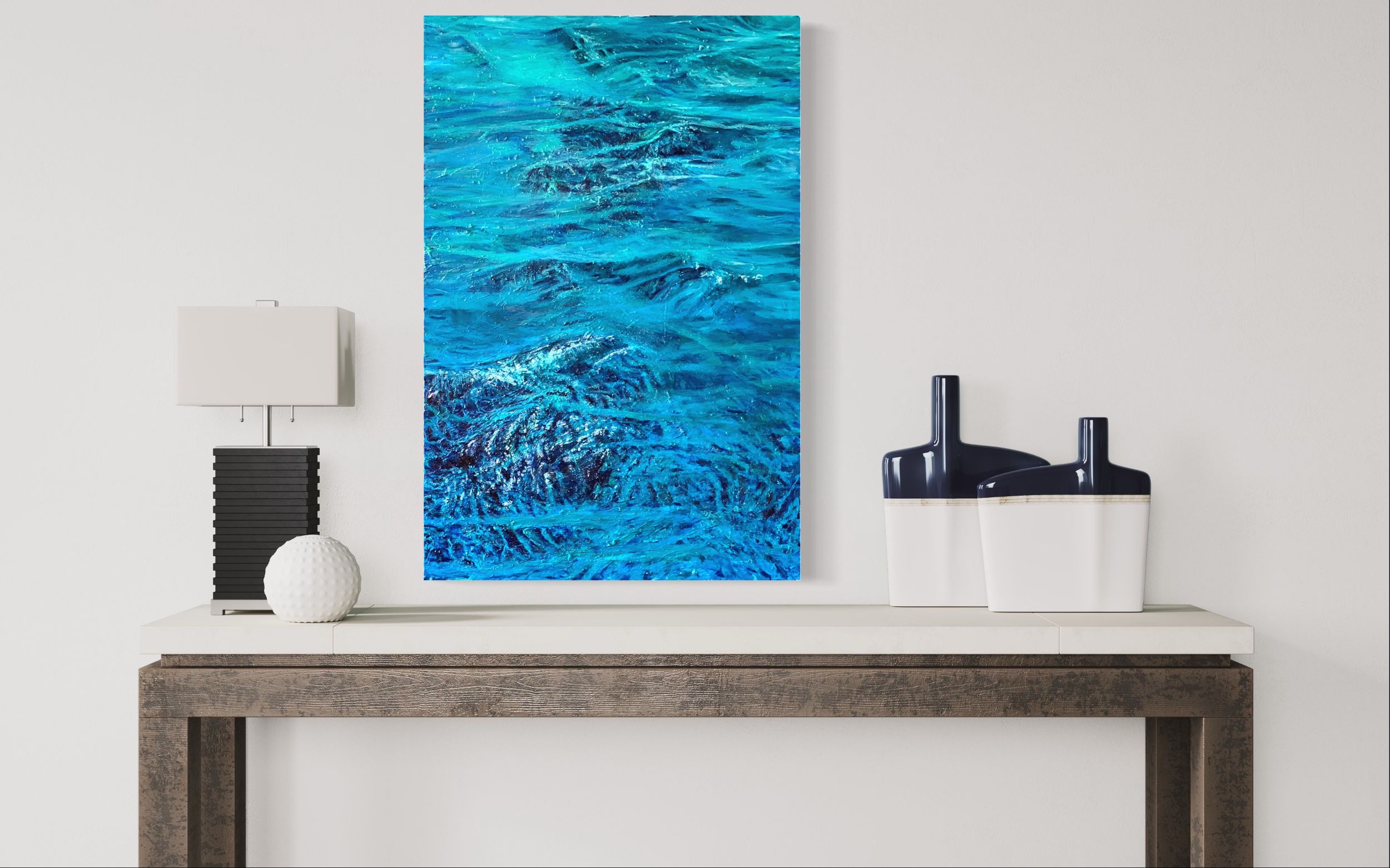 I am speaking about my commission-based business. It’s my specialty to take any room, any style of art, and create that show stopper painting that has personal meaning to it. Most of us want to follow the latest trends, but we want a painting that stimulates a positive feeling. My background in design allows me to incorporate your style into whatever makes you happy.