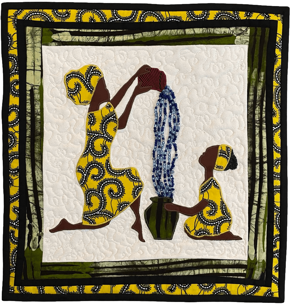 2020 brought the pandemic and like many other small businesses, I made thousands of masks to help. As the COVID crisis waned, I became increasingly curious about quilts and quilt making and had plenty of remnant cloth to easily get going. Quilting is a practice that allows me to more fully understand the traditions of those who created functional or wearable art and textile pieces. I started with YouTube University and then I joined the AAQC (African American Quilt Circle in Durham, NC). This talented group of artists are so creative, encouraging, knowledgeable and generous. I now design one of a kind, contemporary wearable art and quilted wall-hangings with specific African and African-American materials and influences.