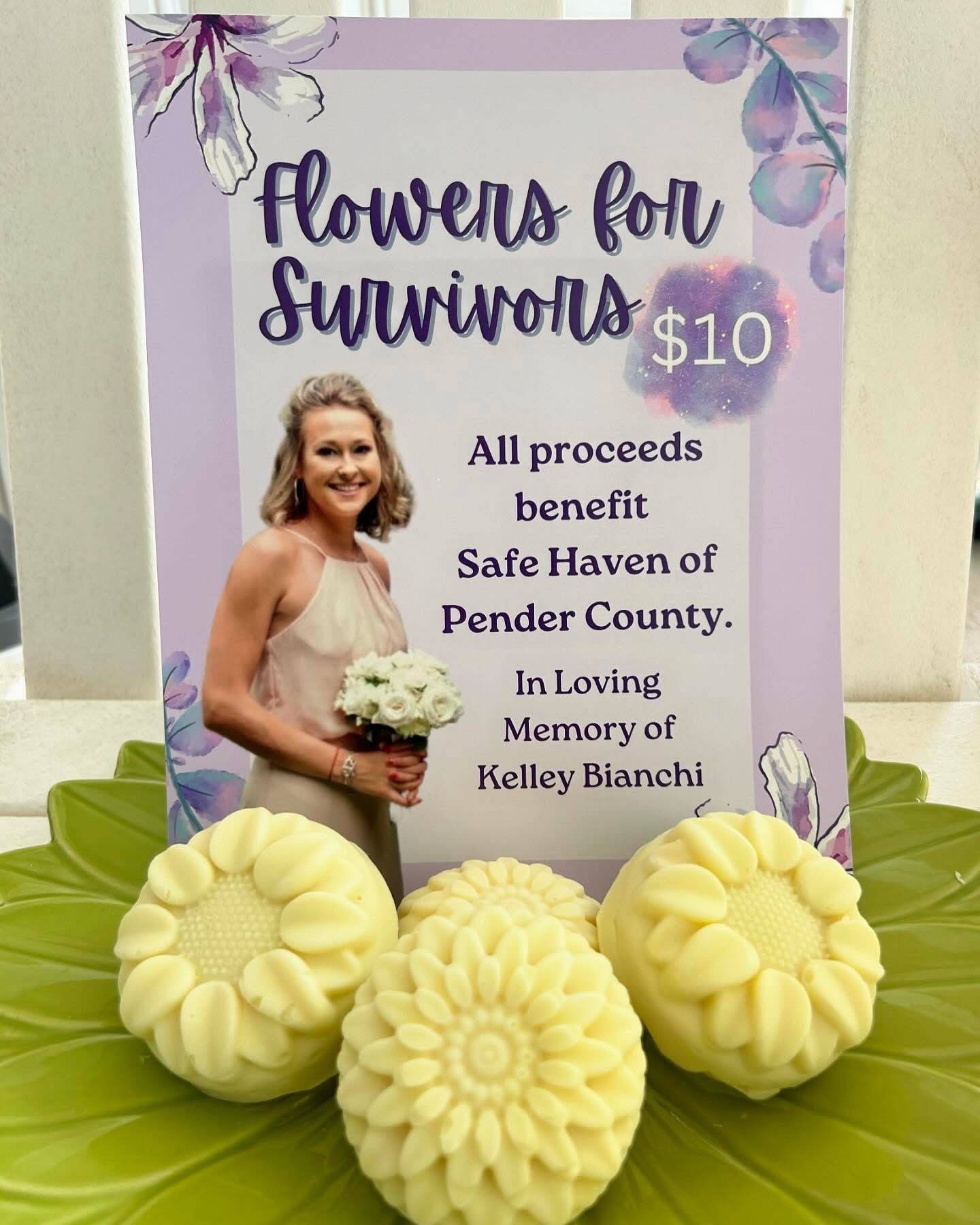 As my healing journey progressed, I decided I wanted to use my small business to benefit others. September 2024 marked the one year anniversary of losing my daughter. I created a limited edition of flower shaped Shea Butter soaps and called them Flowers For Survivors. I sold out of all these soaps in 10 days and donated all the money to Safe Haven of Pender County, a domestic violence agency/shelter in Kelley’s memory.